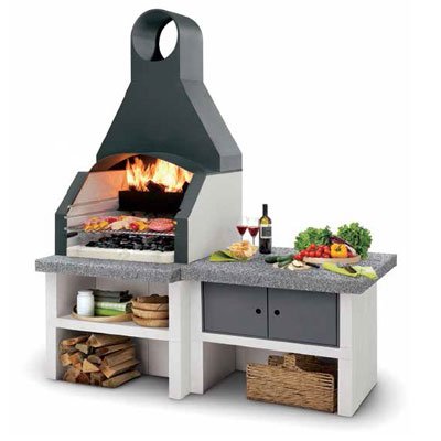 Стол из серой мраморной крошки с полированной столешницей. Гриль имеет вытяжку из нержавеющей стали, окрашенную огнеустойчивой краской. Двойная огнеупорная жаровня. Отсеки для приготовления пищи выполнены из жаростойкого материала. Снабжено решёткой для дров размером 76х40 см. Зольник оборудован системой циркуляции воздуха "fast-fire-box".
