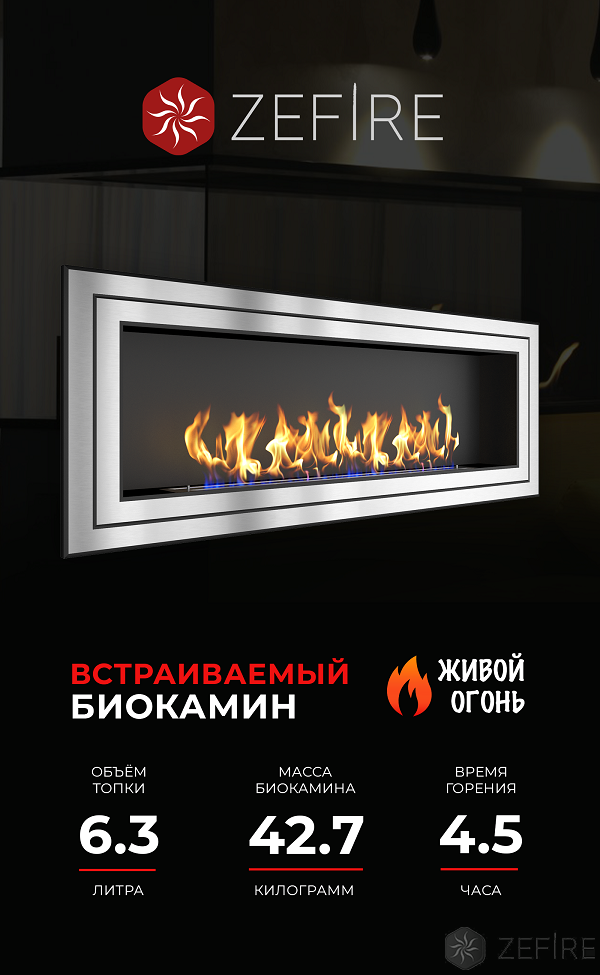Стоит ли покупать биокамин Встраиваемый биокамин ZeFire Sirius 1800
