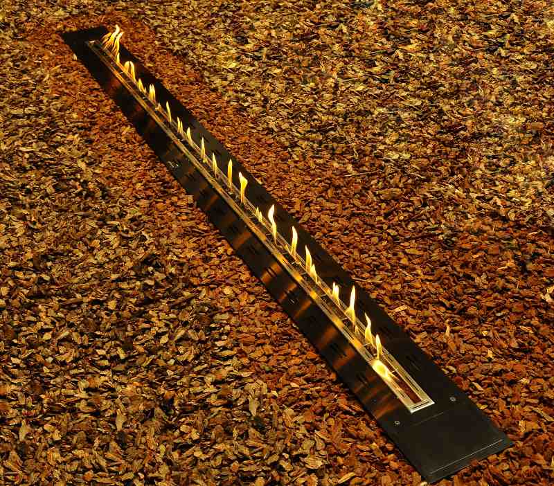 Новинка! Электронная горелка биокамина с длинной и очень реалистичной линией огня, без образования паров биоэтанола. Предлагается несколько вариантов отделки: брашированная нержавеющая сталь (базовая), окрашенная брашированная нержавеющая сталь, цвет - черный (опция), нержавеющая сталь с титановым покрытием (опция), полированная нержавеющая сталь (опция), полированная нержавеющая сталь с глянцевым титановым покрытием (опция, внешне выглядит как черное стекло). Узкий и стильный корпус позволяет встроить горелки в любые дизайнерские проекты.