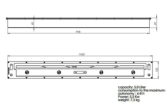 - Габаритные размеры ШxГxВ, (мм): 1020х120х69