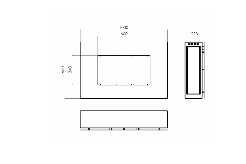 - Габаритные размеры ШxГxВ, (мм): 1000x223x650