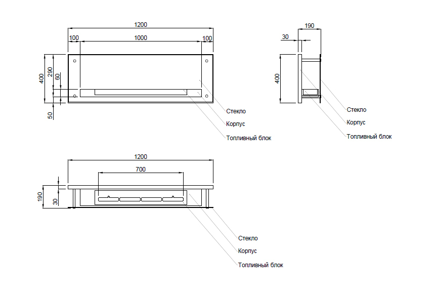 - Габаритные размеры ШxГxВ, (мм): 1200x190x400