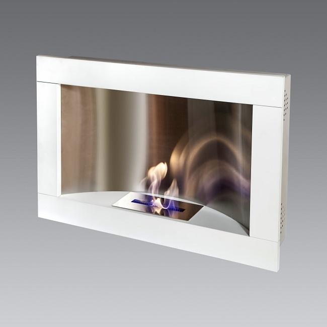 Настенная модель камина на биотопливе, выполненная в металлическом корпусе в виде классического портала. Корпус окрашен термостойкой порошковой краской, цвет – «тёмный металлик» или «белый металлик».