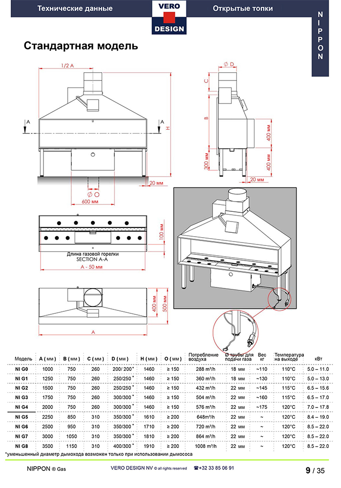 Газовый камин Vero Design Nippon NI G2 D