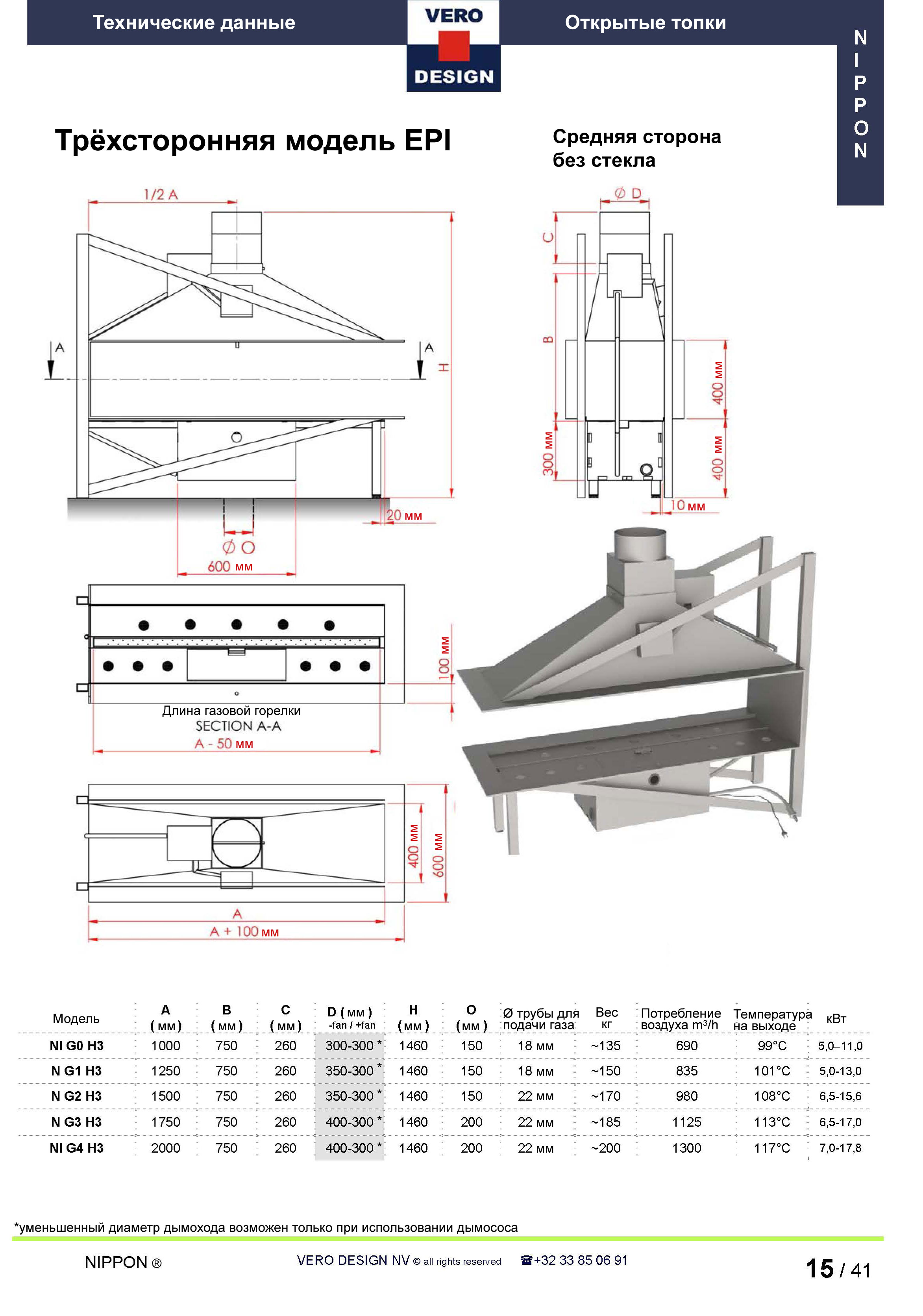 Газовый камин Vero Design Nippon NI G2 H3 G