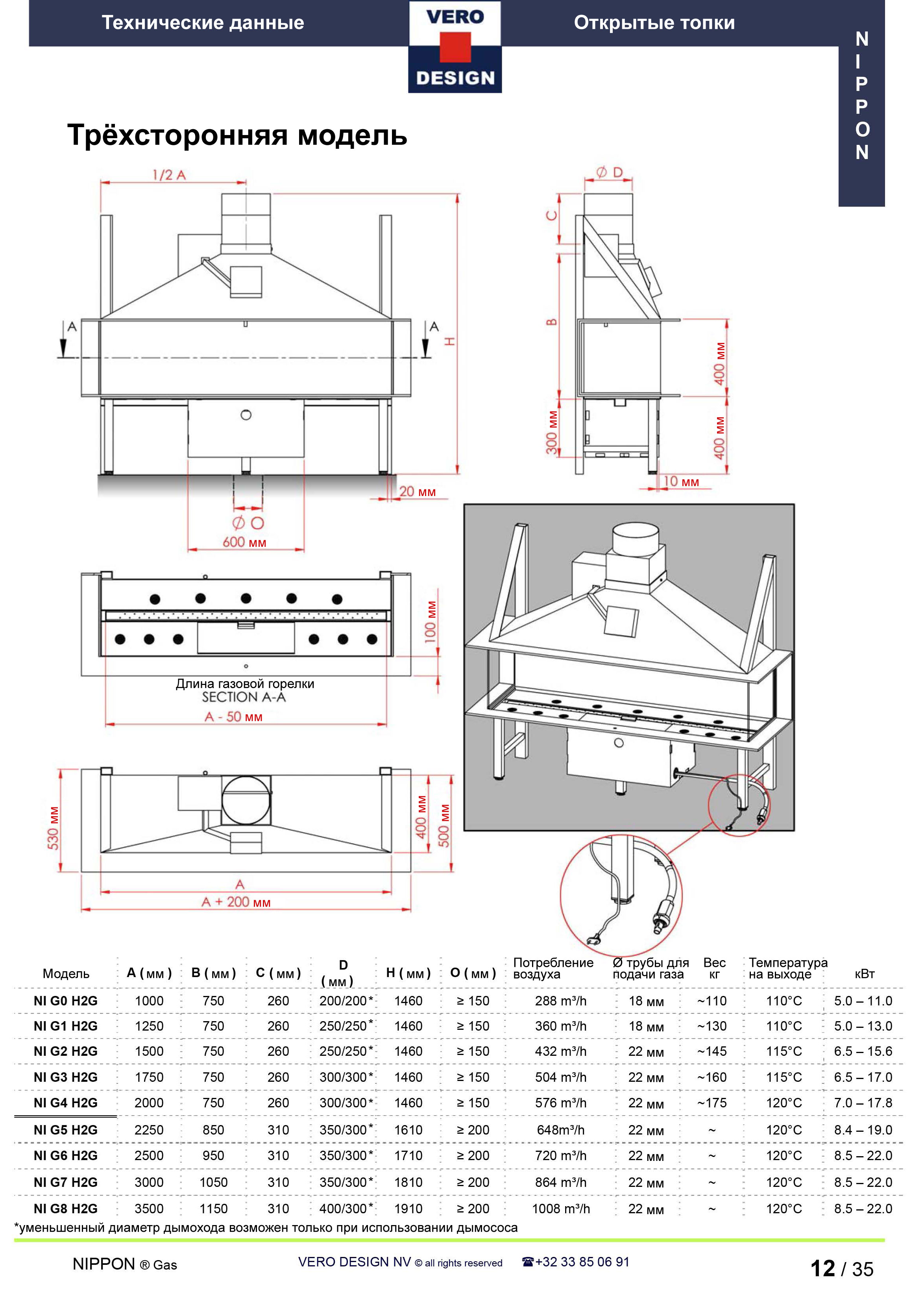 Газовый камин Vero Design Nippon NI G4 H2