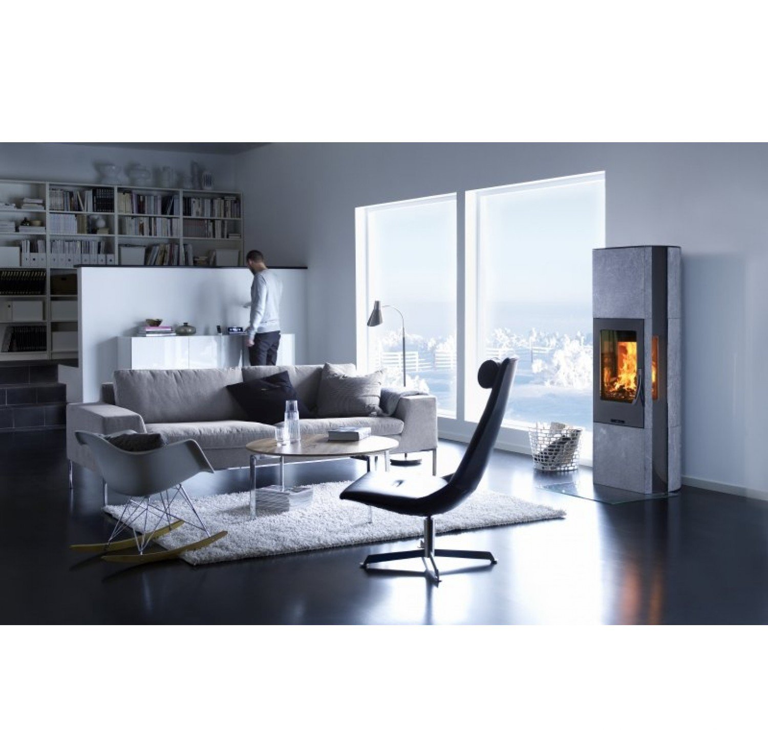 Высокоэффективный источник тепла и света.Этот высокий камин способен держать тепло очень долгое время, так как талькохлорит отдает тепло еще долго после того, как прогорели дрова. Огонь в этом камине также горит долго и интенсивно. Для еще большей теплоотдачи, возможна установка теплонакопительного блока, который увеличит период отдачи тепла еще на несколько часов