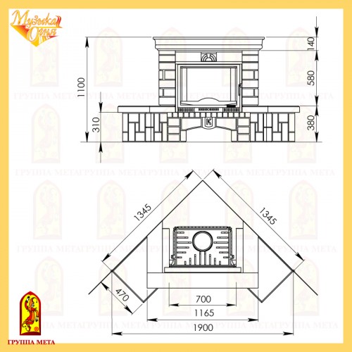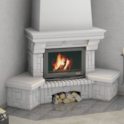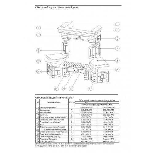 Каминная облицовка Ария выполнена из камня Meta Stone™ желтовато-бежевых тонов. Украшена вставками из колотого доломита. Предтопочная часть выполнена из огнеупорного шамота. Предназначена для отделки топок из чугуна и стали закрытого типа (с дверцей застекленной термостойким стеклом).