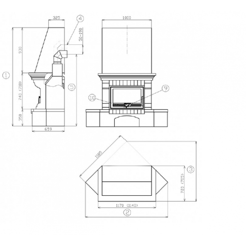 - Расположение камина: - угловой