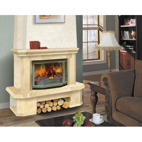 Каминная облицовка Bella Italia Bella полностью исполнена из полированного мрамора и выделяется своей цветовой аскетичностью, насыщая пространство мягким светом. Функциональность модели предусматривает использование чугунных топок со стеклом призматичной формы, при этом облицовка может оформляться деревянной или мраморной балкой. Текстура мрамора имеет размытый орнамент, стилизуя общую атмосферу под старину, что делает гостиную естественно грациозной и уютной.
