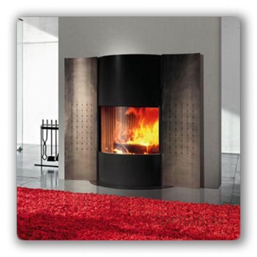 Дизайнеры украсили этот необычный камин оригинальными дверцами. Когда они закрыты, сквозь маленькие отверстия пробивается свет играющих языков пламени. Но стоит Вам открыть их, как огонь оживает, а в комнату через дверцы камина приходят тепло и уют.
