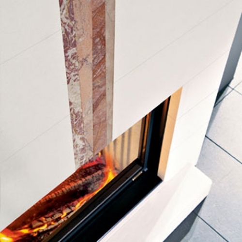 Облицовки EdilKamin выполнены из мрамора, травертина, нержавеющей стали, окрашенного металла, стекла - и это еще далеко не полный перечень используемых материалов для производства дровяных и пеллетных каминов.