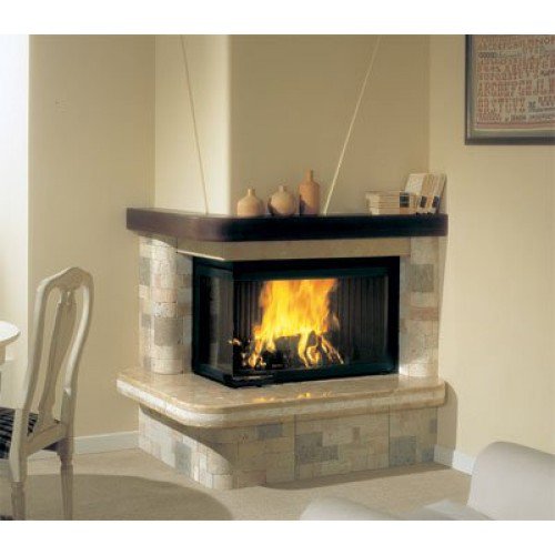 Этот угловой пристенный камин изготовлен из разноцветных кусочков травертина, образующих мозаику. Полка и верхняя горизонталь этой модели выполнены из полированной мраморной крошки Trani. Балка этого камина изготовлена из массива дерева. Эта модель камина станет для Вас и современным домашнем очагом, и необычным элементом Вашего интерьера.