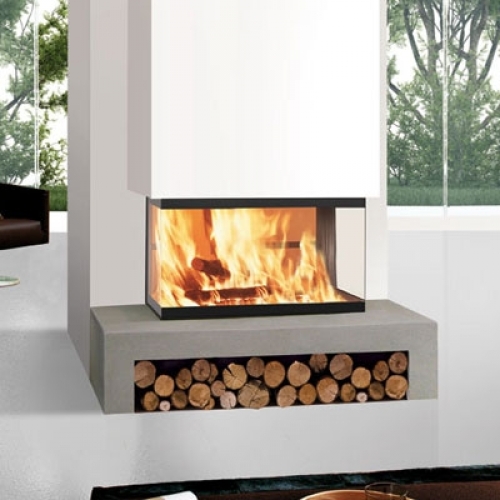 Каминная облицовка выполнена под каминную трехстороннюю топку EdilKamin Side 3N.
