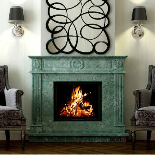 • Камин выполнен из полированного мрамора Verde Guatemala.
