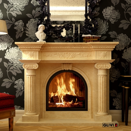- Камин выполнен из полированного мрамора Crema Marfil.