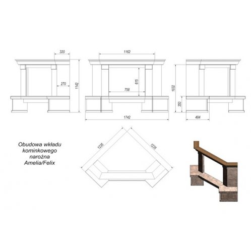 Каминная облицовка Kratki Etna угловая (Amelia/Felix)