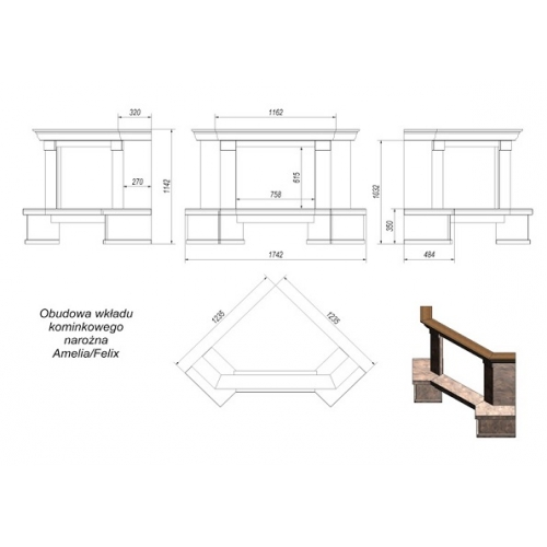 Каминная облицовка Kratki Rimini угловая (Amelia/Felix)