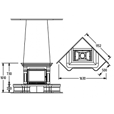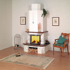 Отметим, что угловые камины имеют свою специфику изготовления и технологию установки его в доме. Самый простой способ монтировать угловой отопительный прибор – это просто приставить его к фальшстене, выполненной из гипсокартона, не изменяя при этом внешнего вида портала. Сверху такой камин имеет вид равнобедренного треугольника.