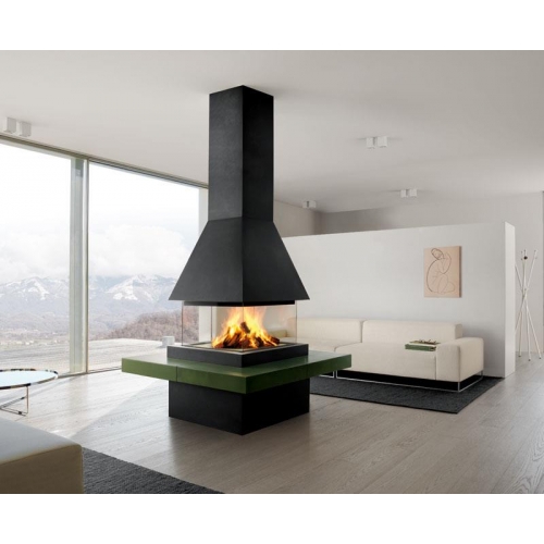 Итальянская компания Piazzetta представляет необычную коллекцию Panoramic, которая наполнена моделями в современном стиле, такая облицовка украсит любой стиль модерн, хай-тек или авангард. Высокотехнологичные материалы отделки способны привнести дизайнерские очертания особо притягательно и стильно. Камин Lund сделан из высоколегированной качественной стали, которая не подвергается коррозии со временем, а также является истинным современным материалом, который создаст особенную атмосферу. Сталь в модели Lund окрашена в черный оттенок. Камин такого плана оснащен высокоточными механизмами, упрощающими работу камина и, одновременно, делающие его необычайно стильным и необычным. Механизм спускание и подъема стеклянной дверки на топке свидетельствует о необычайной универсальности камина. Механизм работает бесшумно. А топку можно считать вариантом, сделанным двумя способами. Это закрытая и открытая топка – если вы хотите максимально приблизить яркое пламя в вашу комнату. Топка камина играет также большую роль, если она закрыта. В закрытой форме топка представляет собой достаточно мощный предмет обогрева для целого дома. Тем более, что в модели Lund очень объемная топка, которая одновременно вмещает в себя большое количество дровяного топлива. Топка сделана также из металла, покрыта жаропрочным стеклом. Оно выполняет еще одну функцию: представляет великолепное по красоте пламя, которое можно увидеть со всех сторон. Полнообъемный просмотр пламени – это очень красивое зрелище, которое еще больше усилит колоритную атмосферу в вашем доме.
