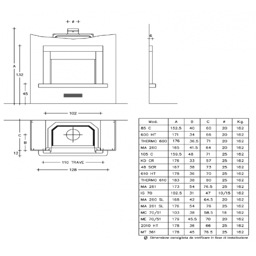 Облицовка камина Novara сделана из полированного мрамора Granada Beige, а нижняя часть и рамка - из шлифованного мрамора Tao серого цвета. Основание камина - из серого туфа под покраску. Камин имеет вентиляционные отверстия, которые можно закрыть, в зависимости от типа установки. Одним из преимуществ камина является его совместимость с большим количеством топок Piazzetta. Камин совместим с топками: MA 260 SL MA 260 B SL MA 261 SL MC 70/51 MA 260 MA 261 ME 70/51 HT 600 HT 610 HT 2010 105 C KD CR 48S CR MT 361 MT 600 MT 610 IG 70