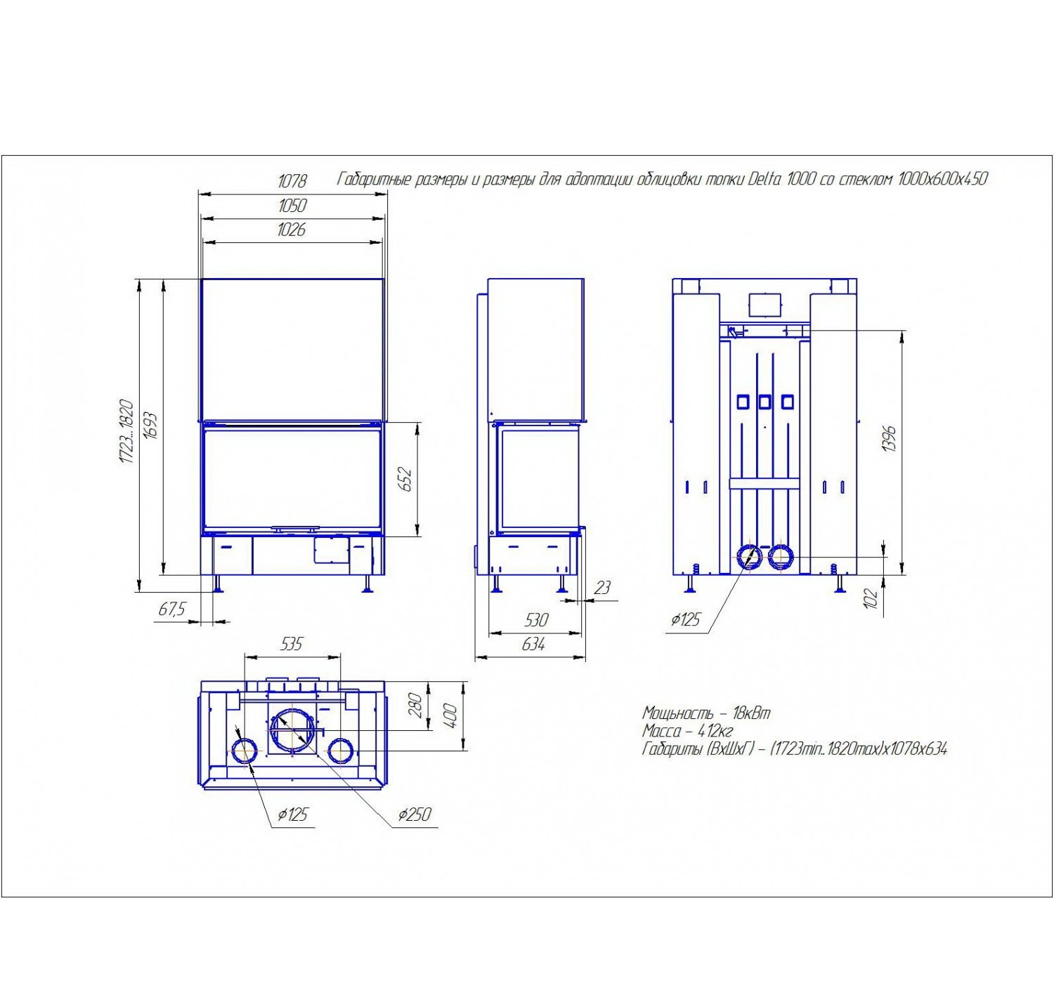 Каминная топка Экокамин дельта 1000 (1000*600*450)