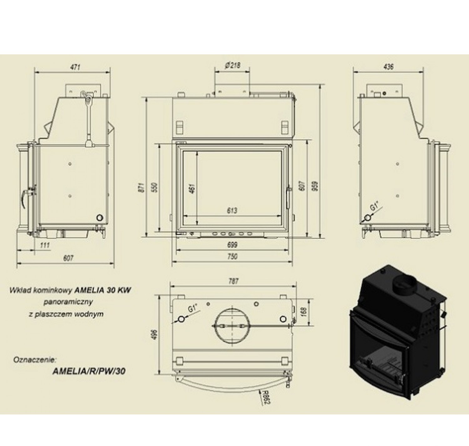 Топка каминная Amelia/R/PW/30 относится ктопкам с водяным контуром. Она имеет производительность в30 кВт, которой достаточно для отопления загородного дома. Дверца топки открывается всторону, снабжена панорамным стеклом, которое носит декоративную функцию изащищает отожогов. При изготовлении этой печи сварка проводилась винертной среде, что обеспечивает хорошее качество сварных швов. Оборудована данная топка механизмом для самостоятельного закрывания дверцы. Каминная топка предназначена для отопления нескольких комнат. Стальная печь счугунными элементами обладает очень высокой отопительной способностью. Дверца из чугуна, жаропрочное стекло полукруглой формы. Теплообменник каминной топки Amelia/R/PW/30 вмещает 60 литров воды. Гарантия надровяную печь Kratki 5 лет.