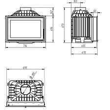 - Оборудована регулятором тяги, который автоматически открывается в момент поднятия дверцы, отсек для дверцы, внутренняя стенка (для прохода конвекционного воздуха), отверстия подвода воздуха через съемные и поворачивающиеся задвижки, съемные ножки, поперечное сечение отверстия выхода дыма, поперечное сечение отверстий выхода воздуха (O125).