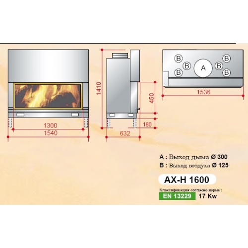 - Выхода конвекционного воздуха: поперечное сечение отверстия не менее - 647 см2