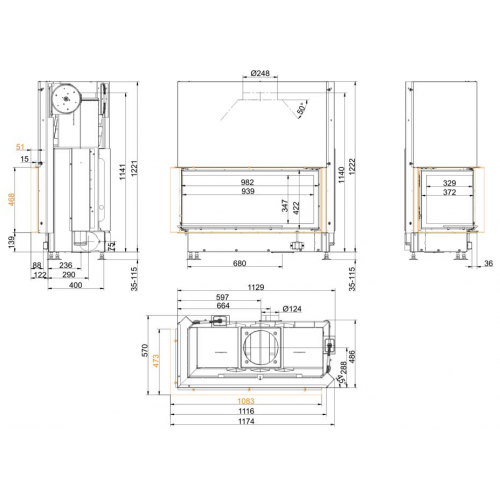 Каминная топка Brunner Architecture-Eck 45/101/40 с левым углом