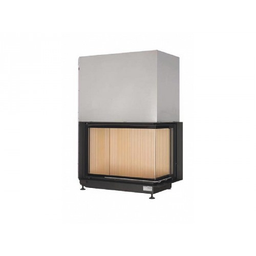 Угловая каминная топка с цельным Г-образным стеклом. Боковое стекло справа. Дверца с подъемным механизмом (система Easy-Lift). Топочная камера футерована шамотом. Ширина дверки 807/467 мм, высота - 544 мм. Возможно подключение воздуха из-вне.