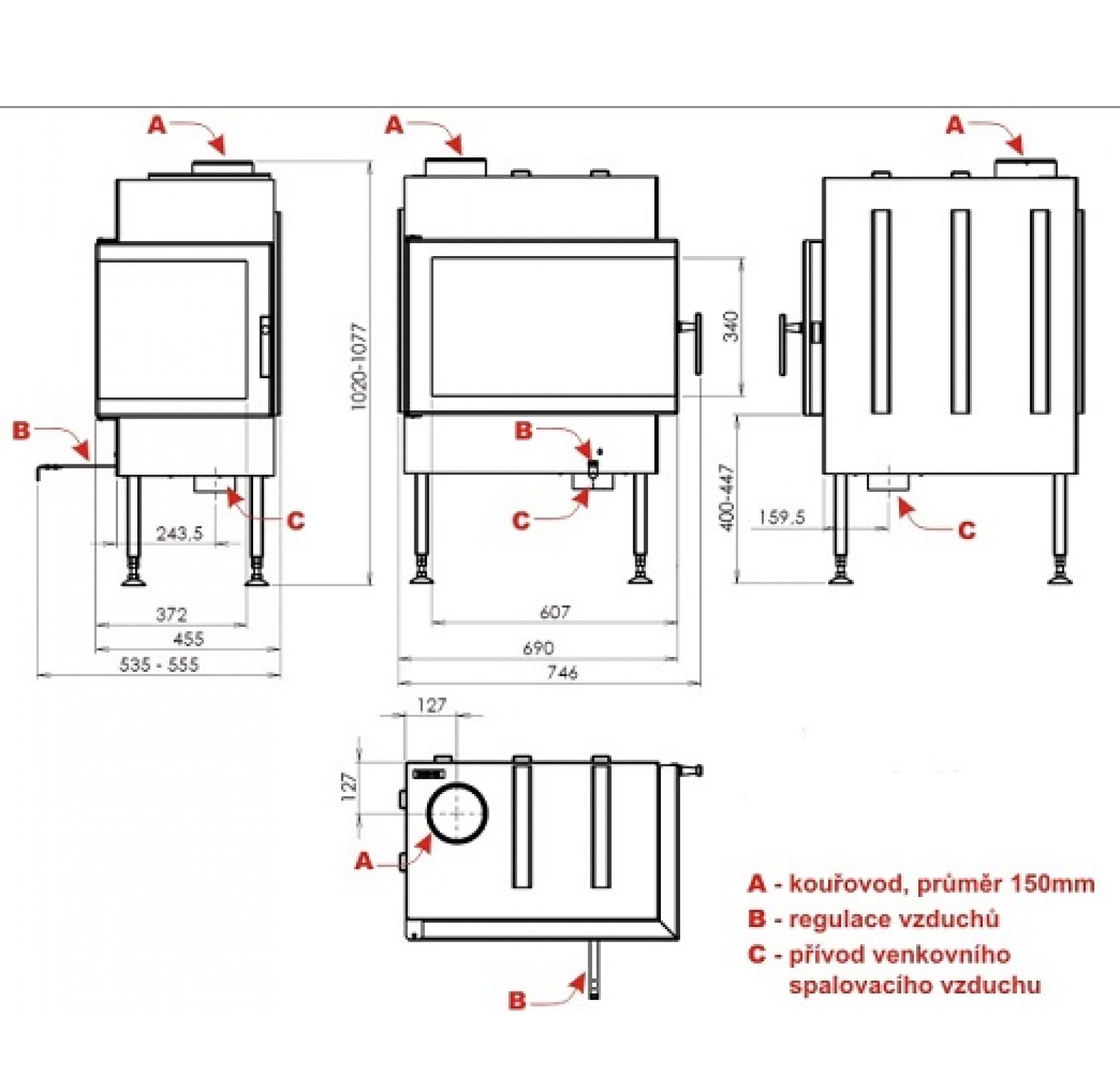 Топка Cardiff имеет стекло на две стороны — фронтальную и боковую. Стекло цельное. Отметим, что даже такая мощная топка из стали весит заметно меньше чугунных аналогов, поэтому стальные топки рекомендуется использовать для помещений с недостаточно укрепленным фундаментом. Благодаря системе двойного дожига, первичный воздух, подаваемый в нижнюю часть топочной камеры, разделяется на два потока: один идет в прямо топку, а другой проходит вдоль ее горячего корпуса и попадает в топочную камеру уже нагретым, позволяя сгорать несгоревшим остаткам топлива. Это не только удлиняет интервал между закладками топлива, но и помогает уменьшить количество вредных выбросов в атмосферу. Каминная топка Cardiff имеет вытянутую прямоугольную форму и интересный дизайн, поэтому может быть интегрирована в самый современный интерьер.
