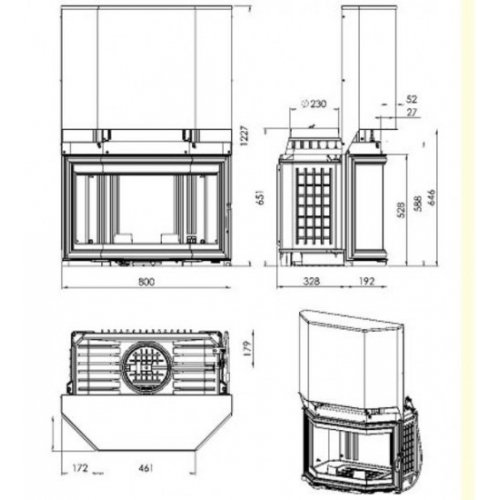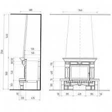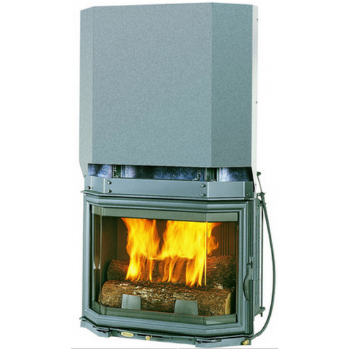 - Топка из чугуна высокого качества.Дверца с призматическим стеклом, открывается вбок и вверх.Обтекатель по заказу.
