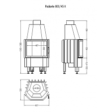 Термостойкость стекла до 800 гр Ц., в зависимости от модели топки, возможно применение двухстороннего или самоочищающегося стекла. Дымовая труба проходящая через длинный шибер для дополнительного теплого воздуха из газов - экономия на каждый день