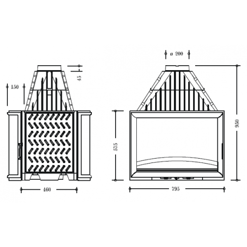- Колосник, дефлектор, задняя стенка топки и ограничитель для дров съемные, что позволяет легко заменять детали без разборки камина (при механических повреждениях).