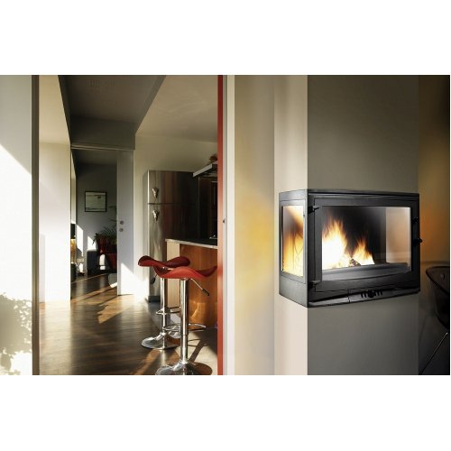 В центре топки вы можете увидеть прочное стекло, которое специально предназначено для тесного контакта с высокими температурами и огнем. Дверца открываются в сторону. Их прозрачность обеспечивает беспрепятственное наблюдение процесса работы камина. Они также служат неким барьером для разлетающихся искр, тем самым сохраняя в целостности ваш ковер или пол.