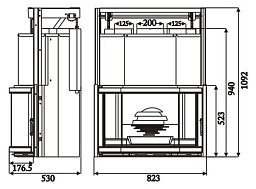 В камин встроен дымосборник, специальная система очистки стекла, а также емкость для золы.