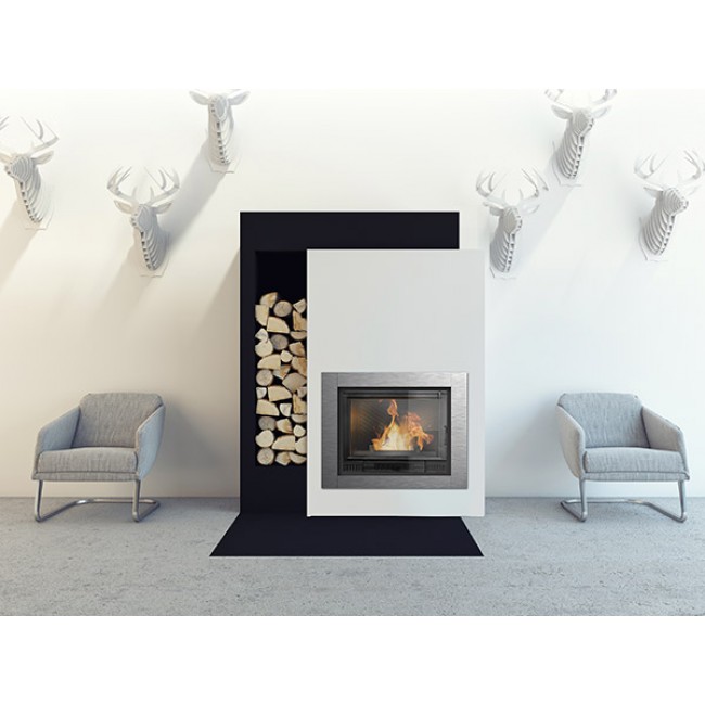 Для защиты корпуса каминной топки в конструкции топочной камеры также установлена двойная задняя стенка с красивым и объёмным рисунком, которая обеспечивает долговечность каминных топок KAWMET.
