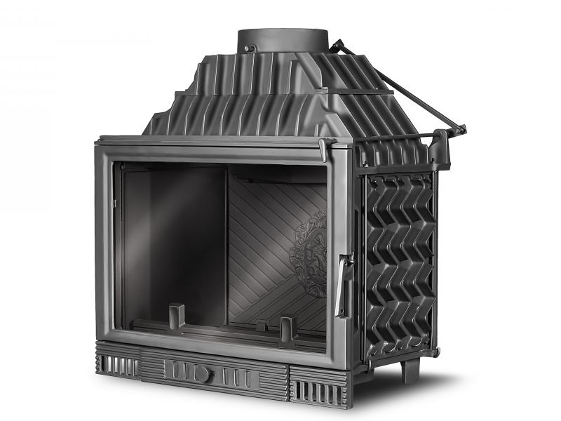 Классическая каминная топка W1 18 кВт с отличными характеристиками, большой мощностью и великолепной ценой, используется для отопления помещений как качественный дизайнерский отопительный прибор, а также как предмет интерьера. Жаростойкая плита в задней части топки декорирована фениксом или гербом со львом на выбор.