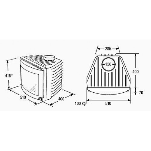 Данная вставка имеется двух размеров и подходит для всех открытых каминов. вставной элемент изготовлен из высококлассного чугуна с гарантией на 10 лет (не относится к стеклу). Двери с цельными, круглыми панорамными стеклами.