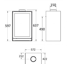 Корпус каминной топки выполнен из жаропрочной стали, колосники и патрубки из чугуна.