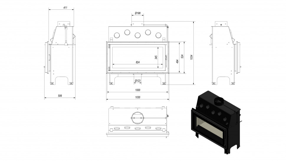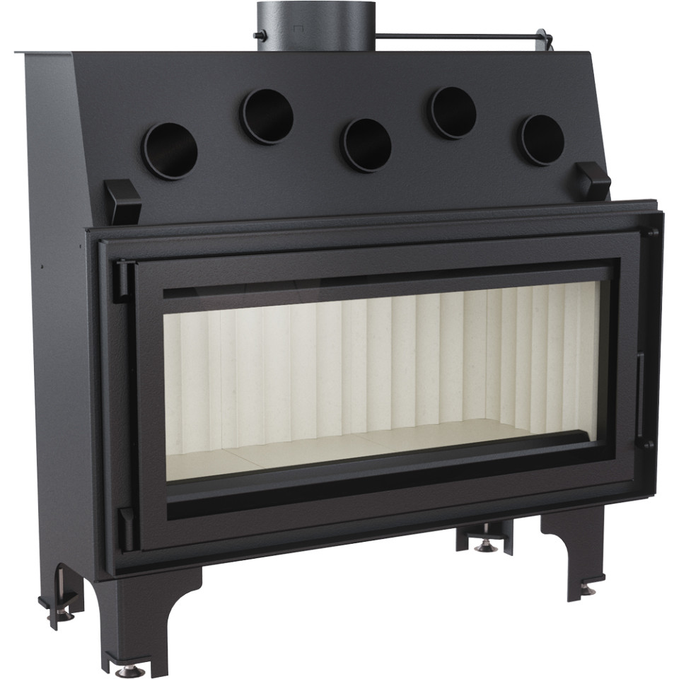 Каминная топка Kratki Mila – встраиваемая топочная камера, выполненная из котельной стали. Представленная модель топочной камеры – широкоформатная топка (топка с большой стеклянной дверцей расположенной горизонтально) выполнена из стали и имеет футеровку. Топка Mila может обогреть помещение более 120 кв.м. жилой площади, работая на недорогом топливе (дровах или угле).