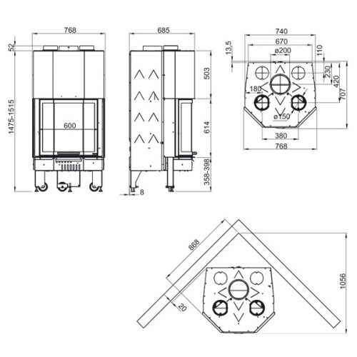 - Диаметр дымохода, мм: - 200