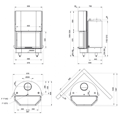 - Диаметр дымохода, мм: - 250