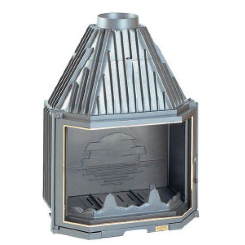 Призматическая форма стекла, высокий дымосборник. Латунная рамка.