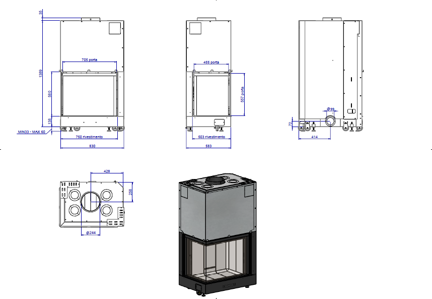 • Отсутствие нижней рамки стекла, увеличивает обзор огня.