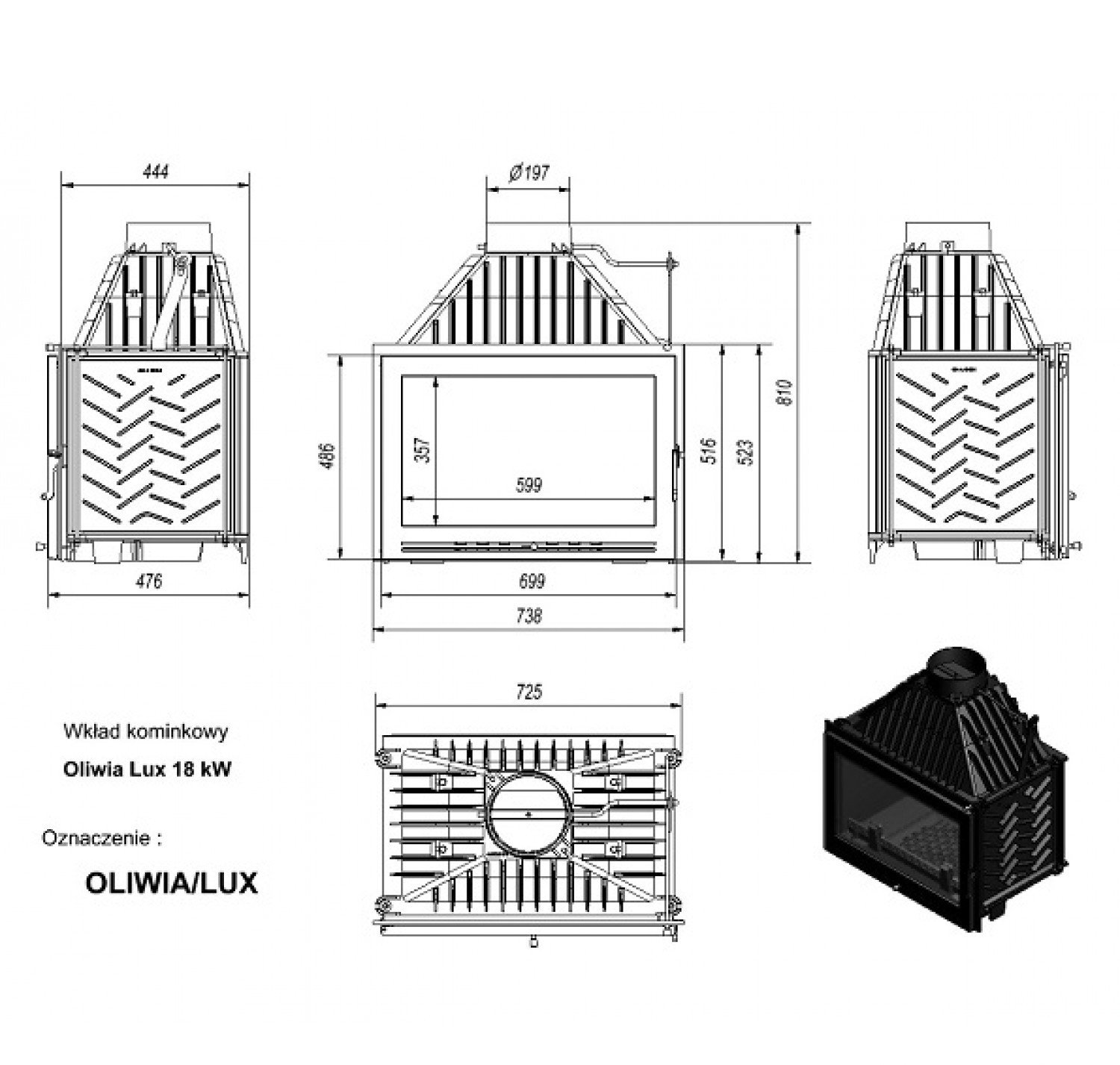 Каминная топка Oliwia/LUX прямое стекло