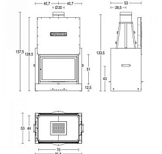 Горизонтальная топка на метане или сжиженном газе. Металлический черный обклад с вертикальными засечками. В комплекте - пульт ДУ, керамические дрова.