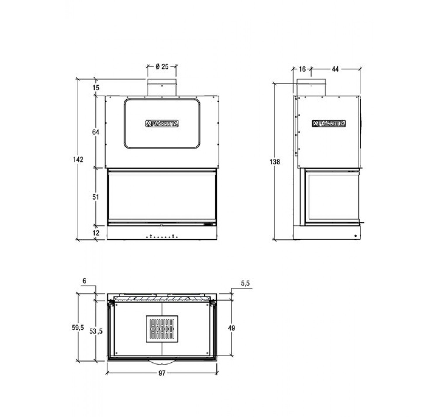 Каминная топка PIAZZETTA MА 271 SL произведена в Италии.
