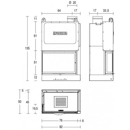 Проем:  Дверца из эмалированной стали с жаропрочным стеклом, выдерживающим температуру до 750°, с самообдувом. Дверца на петлях.